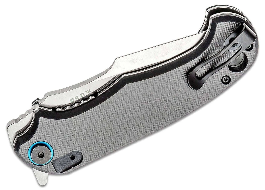 When designer Jim Hammond of Birmingham, Alabama put pen to paper, he did so with the intention of creating a knife that was equal parts powerful, compact, and highly aesthetic. The PSD hits the mark. The impossible-to-miss re-curve of the blade performs when making deep cuts and slicing, while the double grind makes pushing more efficient. The surprisingly compact G10 and carbon fiber handle accommodates a solid four-finger grip and is finished with an electric blue pivot and pocket clip.