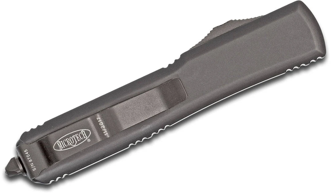 Microtech equipped this version of the ever popular Ultratech D/A OTF knife with a smooth, contoured handle design that promotes increased comfort during use. This updated model provides the same dimensions, hardware, and durability offered by the “Tri-Grip” variation, but goes easier on the hands and pockets.