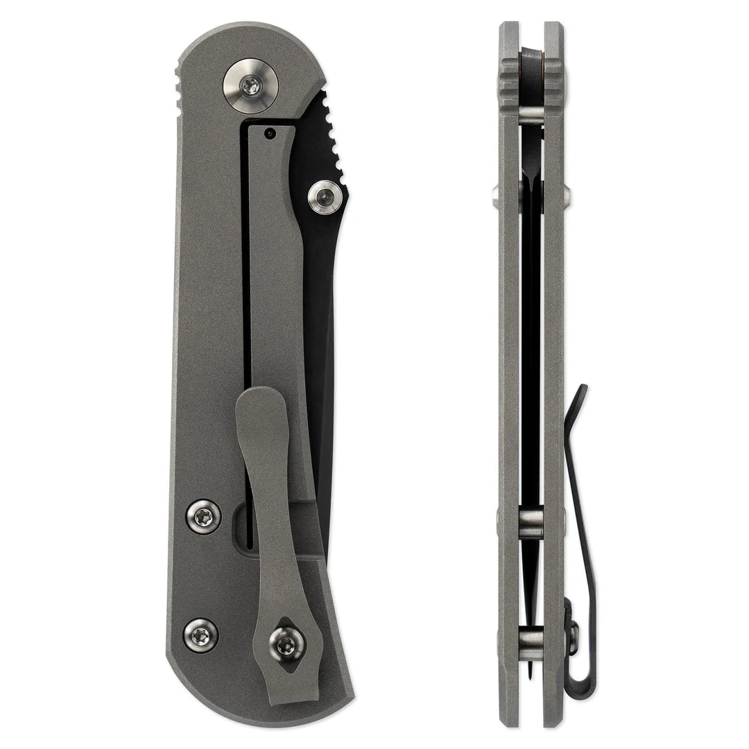 With an extra-high bevel grind that provides plenty of sharpening life, this frame lock folding knife uses premium 6al-4v titanium, precision-machined handle scales with a CPM S35VN blade. We custom-make every screw and back spacer in our manufacturing facility, also using 6al-4v titanium. The blade rides on phosphor bronze washers, giving it a smooth, controlled folding action, and our signature deep carry titanium pocket clips allow the knife to sit lower in the pocket for extra comfort when carrying.