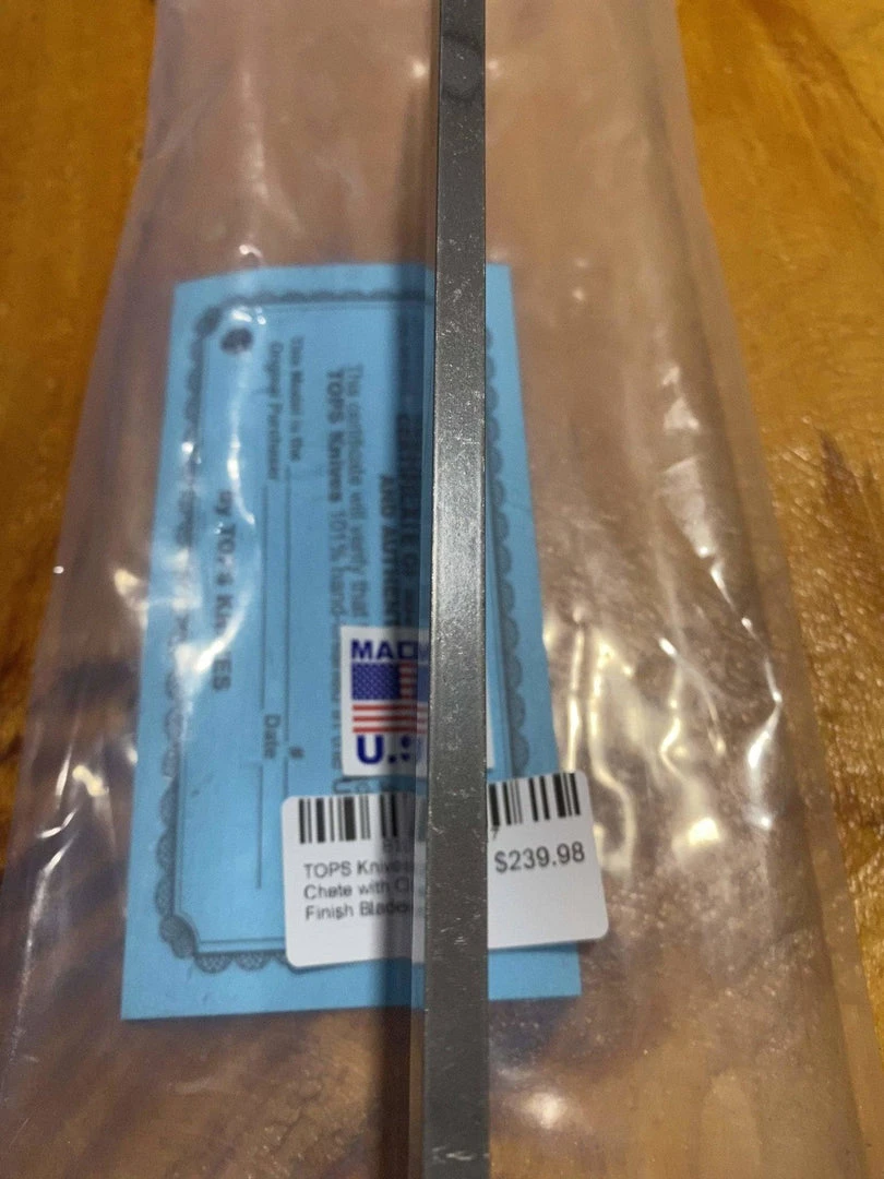 El Chete is the first TOPS knife to be released with our wicked new finish called Acid Rain. Because of the process we use, the finish varies slightly from knife to knife so that each person gets something unique. We wanted the handles to be thick enough to fill each user’s hand like a hatchet or small ax handle would, so we decided to use sandwiched Micarta. It’s well rounded for comfort and the black canvas Micarta underneath the green canvas Micarta adds even more to the aesthetics of this piece.