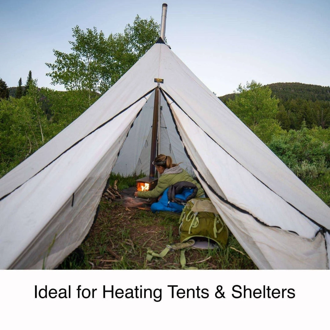 Materials: Made with ultralight titanium, the Winnerwell Fastfold Titanium Tent Stove is highly portable and incredibly lightweight at just 4 pounds. Titanium can withstand much higher temperatures than steel, allowing this stove to be made from very thin material that keeps weight and pack size to a minimum. The high heat transfer efficiency of Titanium allows these stoves to effectively heat small shelters in very cold conditions and hold hot coals for hours.